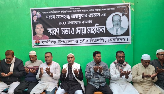 ঝিনাইদহ কালীগঞ্জ উপজেলা বিএনপির সাবেক আহ্বায়ক, সাবেক সফল পৌর মেয়র ও ঝিনাইদহ জেলা বিএনপির সহ-সভাপতি মরহুম মাহবুবার রহমানের রুহের মাগফেরাত কামনায় দোয়া ও স্মরণসভা অনুষ্ঠিত...
