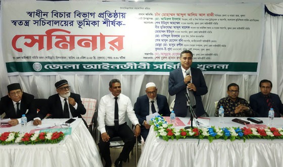 স্বাধীন বিচার বিভাগ প্রতিষ্ঠায় স্বতন্ত্র সচিবালয়ের ভূমিকা' শীর্ষক এক সেমিনারে বিচারবৃন্দ, আইনজীবী, মানবাধিকার কর্মী এবং বিচার প্রার্থীসহ সংশ্লিষ্ট ব্যক্তিবর্গ স্বাধীন বিচার বিভাগের জন্য আলাদা বিচার...