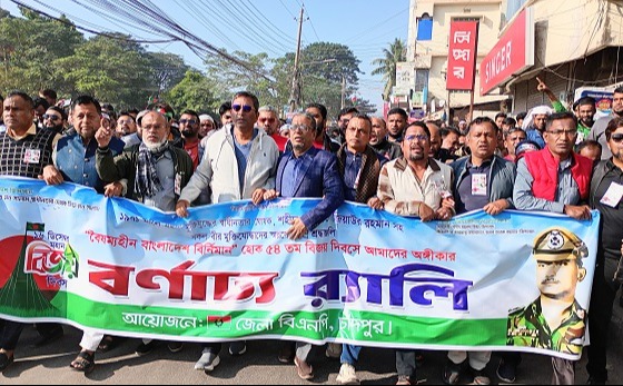 মহান বিজয় দিবস উপলক্ষে চাঁদপুরে বিএনপির বিজয় র্যালি অনুষ্ঠিত হয়েছে। চাঁদপুর জেলা বিএনপির আয়োজনে সোমবার ১৬ ডিসেম্বর ২০২৪ সকাল ৯ টায় শহরের দলীয় কার্যালয়ের সামনে...