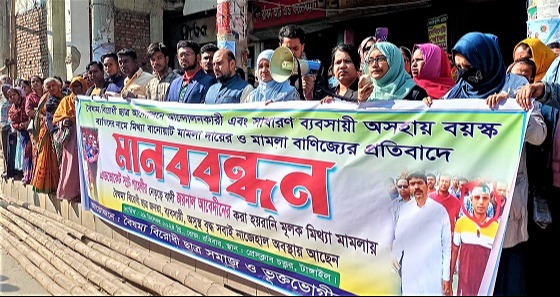 বৈষম্য বিরোধী ছাত্র আন্দলনে আন্দলনকারী এবং সাধারন ব্যবসায়ী ও বয়স্ক ব্যক্তিদের নামে মিথ্যা বানোয়াট মামলা দায়ের করে মামলা বাণিজ্যের প্রতিবাদে মানববন্ধন কর্মসূচীপালন করেছে বৈষম্য বিরোধী...