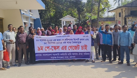 আগামী ১৫ ডিসেম্বরের মধ্যে নবম পে-স্কেলের গেজেট প্রকাশের দাবিতে বরিশালের গৌরনদীতে সরকারি কর্মকর্তা ও কর্মচারীরা মানববন্ধন, বিক্ষোভ সমাবেশ এবং স্মারকলিপি প্রদান করেছেন। বাংলাদেশ সরকারি কর্মচারী...