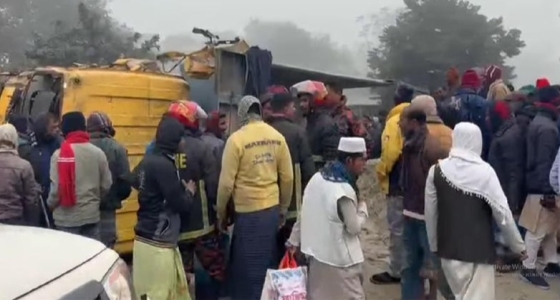 রাজশাহীর পুঠিয়া উপজেলার ঝলমলিয়া কলার হাটে উল্টে যাওয়া বালুবাহী ট্রাকের নিচে চাপা পড়ে অন্তত চারজন নিহত হয়েছেন।