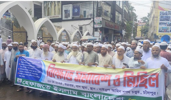 আলোচিত নারী বিষয়ক সংস্কার কমিশন বাতিল,মিথ্যা মামলা প্রত্যাহার সহ চার দফা দাবিতে জুম্মার নামাজের পর চাঁদপুর বাইতুল আমিন জামে মসজিদ এলাকায় বিক্ষোভ সমাবেশ করেছে হেফাজতে...