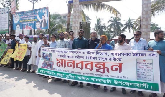 বরগুনা পাথরঘাটায় স্বাস্থ্য কমপ্লেক্সে চিকিৎসা স্টাফ নিয়োগ ও সরকারি পরীক্ষা-নিরীক্ষা চালুর দাবিতে মানববন্ধন অনুষ্ঠিত হয়েছে। মঙ্গলবার (২১ অক্টোবর) বেলা ১১টায় পাথরঘাটা গোল চত্বরে অনুষ্ঠিত মানববন্ধনে...