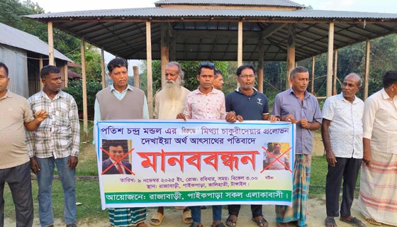 টাঙ্গাইলের কালিহাতীতে চাকরির প্রলোভন দেখিয়ে সাধারণ মানুষের কাছ থেকে অর্থ আত্মসাতের অভিযোগে পতিশ চন্দ্র মণ্ডলের বিরুদ্ধে মানববন্ধন করেছে এলাকাবাসী।রোববার (৯ নভেম্বর) বিকেল ৩টায় উপজেলার রাজাবাড়ী...