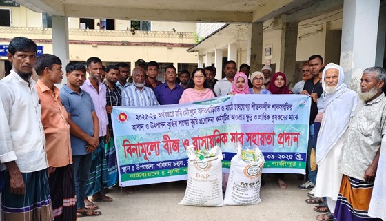 গাজীপুরের কাপাসিয়া উপজেলা কৃষি কর্মকর্তার কার্যালয়ের উদ্যোগে ক্ষুদ্র ও প্রান্তিক কৃষকদের মাঝে বিনামূল্যে বীজ ও সার সহায়তা প্রদান করা হয়েছে। ২৯ সেপ্টেম্বর সোমবার দুপুরে উপজেলা...