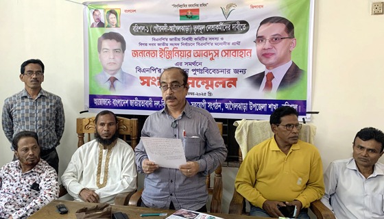 ত্রয়োদশ জাতীয় সংসদ নির্বাচনে বরিশাল- ১ (গৌরনদী-আগৈলঝাড়া) আসনে বিএনপি’র মনোনয়ন পুনর্বিবেচনার জন্য আগৈলঝাড়ায় সংবাদ সম্মেলন। মনোনয়ন প্রত্যাশী বিএনপি নির্বাহী কমিটির সদস্য ইঞ্জিনিয়ার আব্দুস সোবাহান সমর্থক...
