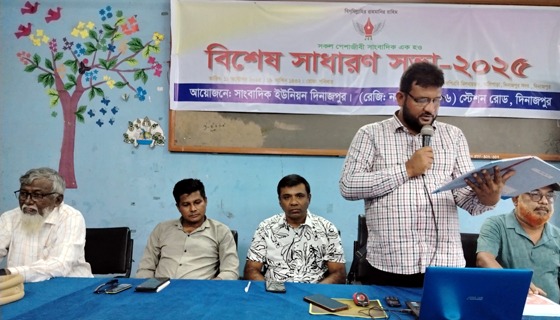 সাংবাদিক ইউনিয়ন দিনাজপুর (রেজিঃ নং রাজ-২৯৩৬) এর বিশেষ সাধারণ সভা অনুষ্ঠিত হয়েছে। ১১ অক্টোবর ২০২৫ শনিবার সকালে দিনাজপুর শহরের ঘাসিপাড়ায় এফপিএবি মিলনায়তনে সংগঠনের সভাপতি মোফাচ্ছিলুল মাজেদ...