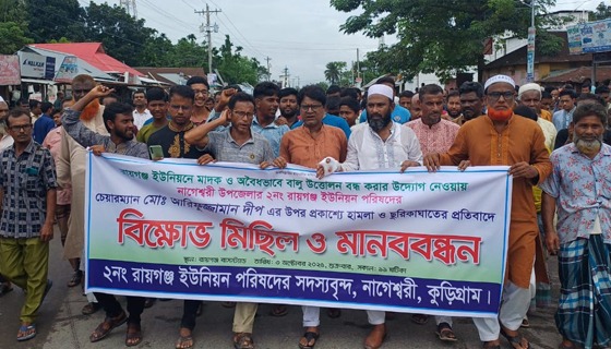 কুড়িগ্রামের নাগেশ্বরী উপজেলার রায়গঞ্জ ইউপি চেয়ারম্যান আরিফুজ্জামান দীপ মন্ডলের উপর হামলা ও ছুরি দিয়ে আঘাত করে আহত করার প্রতিবাদে বিক্ষোভ ও মানববন্ধন করেছে এলাকাবাসী। শুক্রবার...