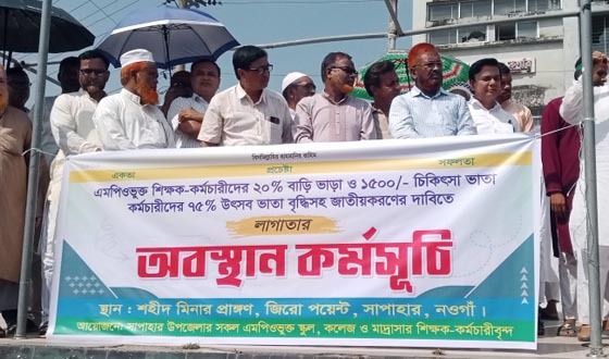নওগাঁর সাপাহারে ৩ দফা দাবীতে এমপিওভুক্ত শিক্ষক কর্মচারীদের লাগাতার অবস্থান কর্মসূচি অনুষ্ঠিত হয়েছে।মঙ্গলবার সাপাহার উপজেলার সকল এমপিওভুক্ত স্কুল, কলেজ ও মাদ্রাসার শিক্ষক কর্মচারীদের আয়োজনে জিরো...